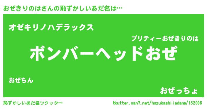 | 意味不明あだ名 | 『眠気覚ましガムおぜきりのは味』 |