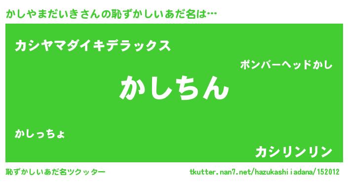 | ヘコむあだ名 | 『かしやまだいき(笑)』『かしぷりん』 |