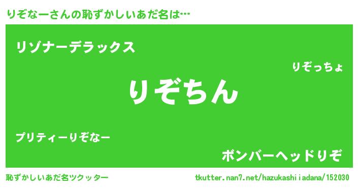 | 男性向けラノベタイトル風あだ名 | 『りぞなーという概念が存在しない退屈な世界 』 |