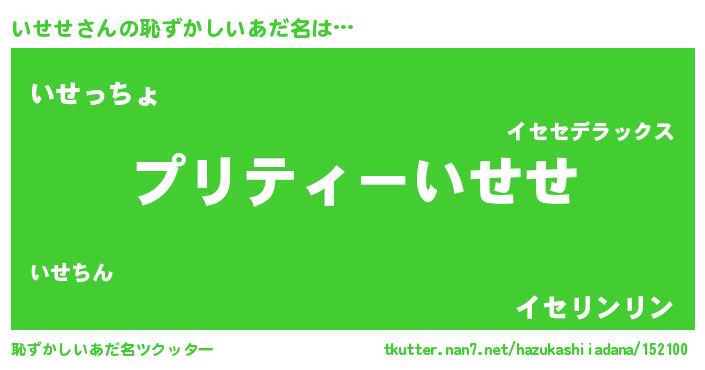 | ファンタジー風あだ名 | 『イセフェル』『エターナルイセセー』 |
