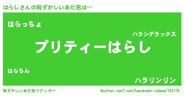 | ヒーロー風カッコイイあだ名 | 『スーパーハラシ』『ウルトラはらしマン』 |