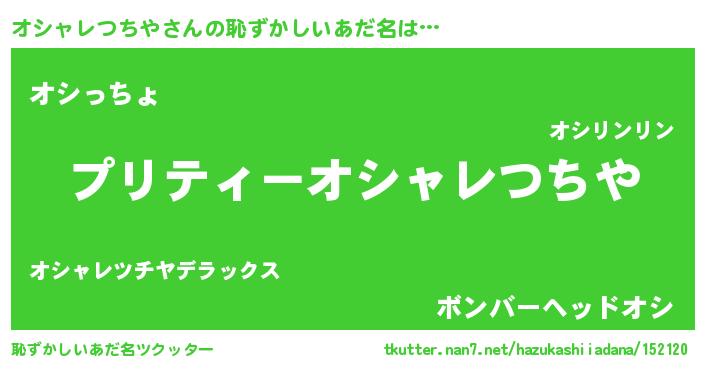 | 男性向けラノベタイトル風あだ名 | 『オシャレツチヤアートオンライン』 |