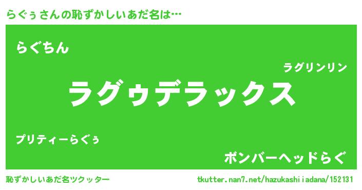 | ヘコむあだ名 | 『らぐぅ(小並感)』『らぐっぺ』 |