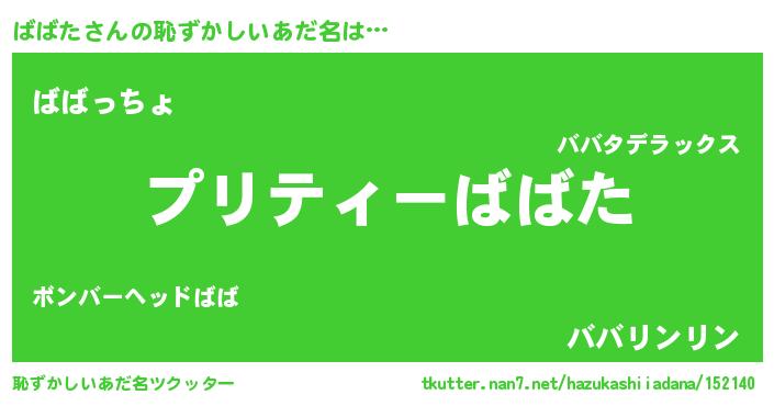 | ポケモン風あだ名 | 『ババチュウ』『ババタダネ』 |
