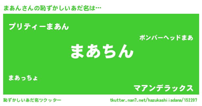 | ヘコむあだ名 | 『まあん(笑)』『まあにゅー』 |