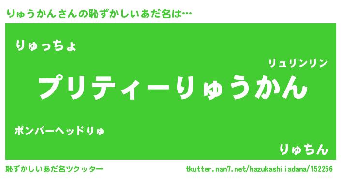 | 男性向けラノベタイトル風あだ名 | 『りゅうかんの憂鬱』『緋弾のリュウカン』 |