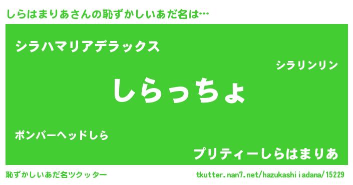 | 意味不明あだ名 | 『しらはまりあフォーエバー』 |