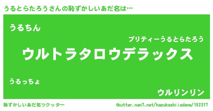| ヘコむあだ名 | 『うるとらたろう(笑)』『うるを』 |