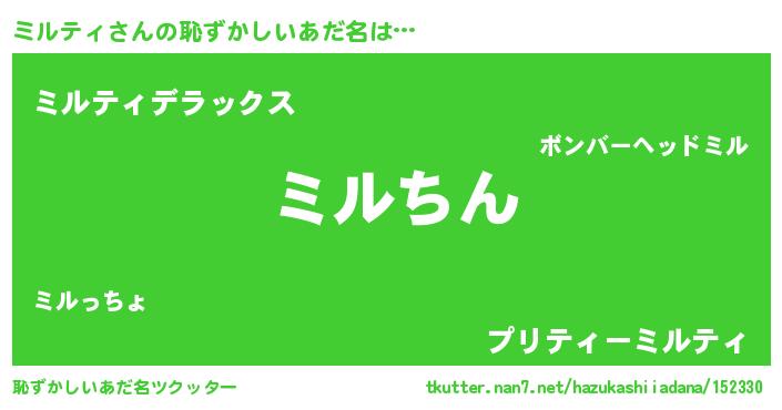 | ヘコむあだ名 | 『ミルティ(震え声)』『ミルにゅー』 |
