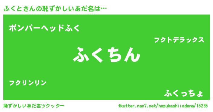 | ヘコむあだ名 | 『ふくと(苦笑)』『なまこ酢』 |