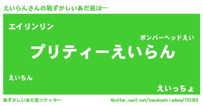 | 男性向けラノベタイトル風あだ名 | 『えいらんの憂鬱』『魔弾の王とえいらん』 |