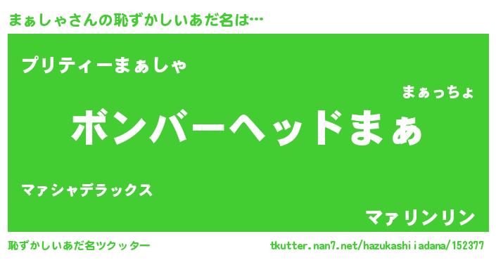 | ヒーロー風カッコイイあだ名 | 『天空の使者まぁしゃ』『暗黒騎士マァ』 |