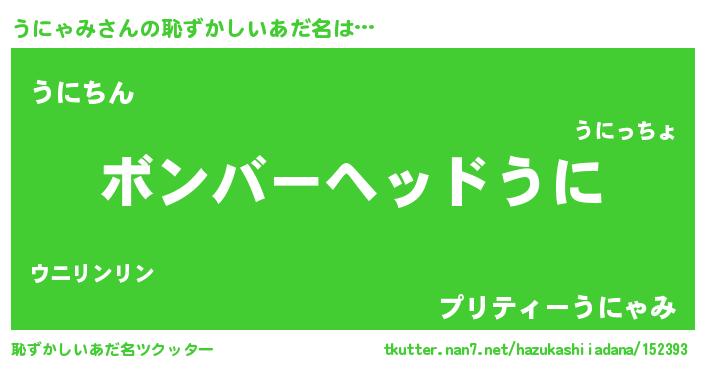 | ヒーロー風カッコイイあだ名 | 『仮面ウニダー』『正義の使者うにゃみ』 |