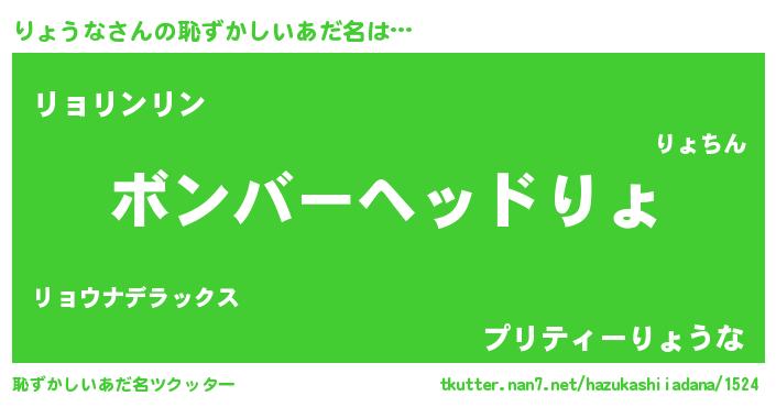 | 男性向けラノベタイトル風あだ名 | 『リョウナスレイヤー』『りょうなの憂鬱』 |