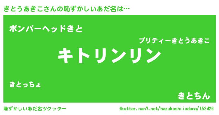 | ポケモン風あだ名 | 『ヒキトウアキコ』『キックウザ』 |