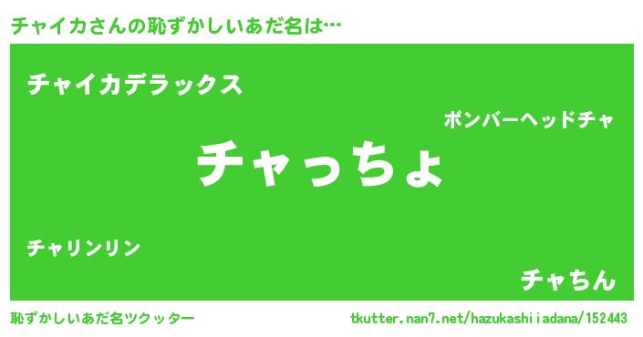 | ヒーロー風カッコイイあだ名 | 『ウルトラチャイカマン』『ネオチャイカ』 |