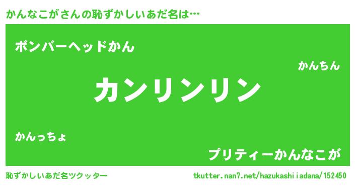 | 男性向けラノベタイトル風あだ名 | 『かんなこがの嫁は女の子じゃないと思った?』 |