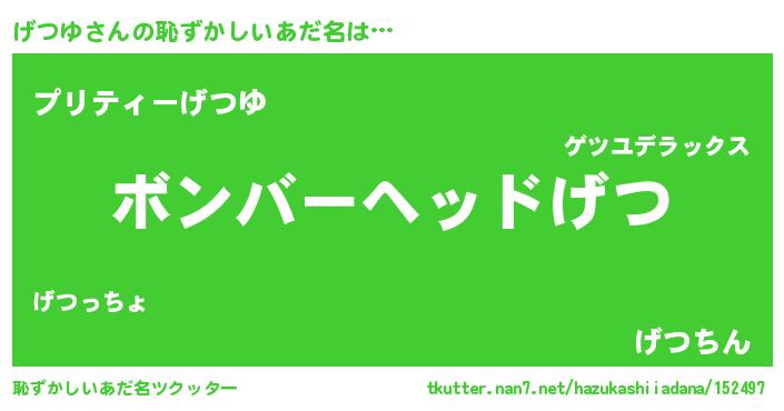 | ヘコむあだ名 | 『げつふぇ~』『げつゆ(爆)』 |