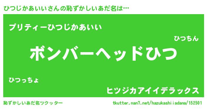 | ヘコむあだ名 | 『ひつっふぃ~』『ひつじかあいい(小並感)』 |
