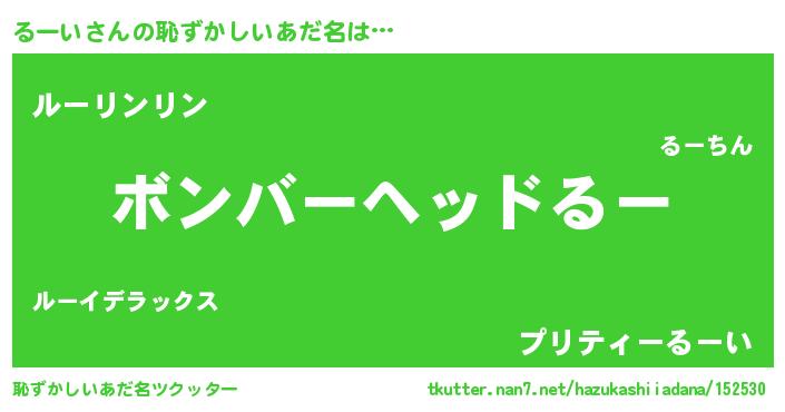 | 男性向けラノベタイトル風あだ名 | 『この素晴らしい世界にるーいを!』 |