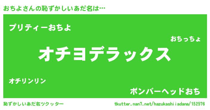 | 意味不明あだ名 | 『自称おちよ』『ペロリンおちよ』 |