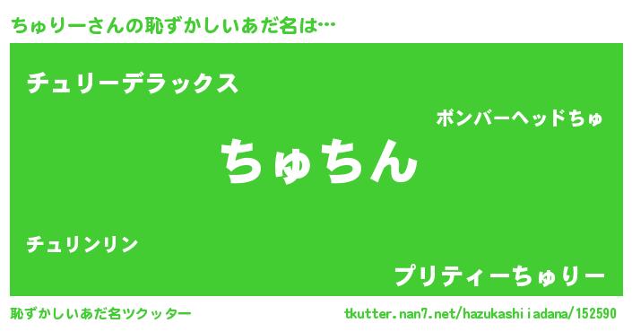 | ヘコむあだ名 | 『ちゅりー(笑)』『ちゅにゅー』 |