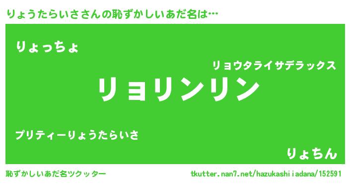 | 意味不明あだ名 | 『とにかく怪しいりょうたらいさ』 |