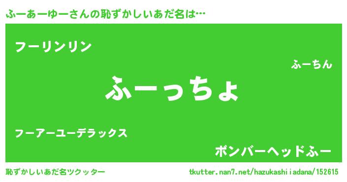| 意味不明あだ名 | 『ふーあーゆーフォーエバー』 |