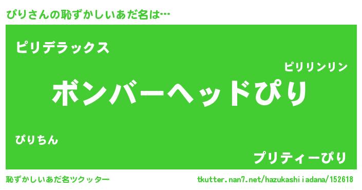 | ヘコむあだ名 | 『ぴりもー』『ぴりを』『ぴり(苦笑)』 |