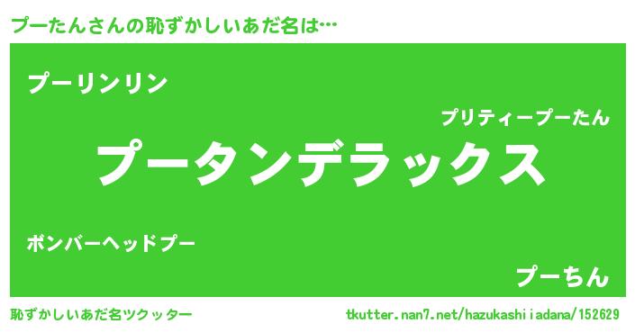 | 男性向けラノベタイトル風あだ名 | 『この素晴らしい世界にプーたんを!』 |