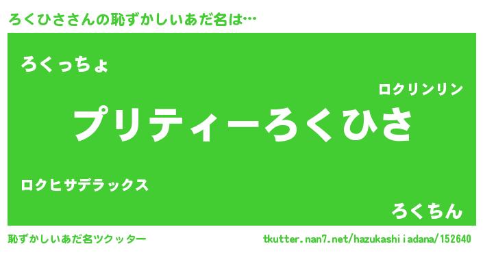 | ファンタジー風あだ名 | 『ロクフェル』『エターナルロクヒサー』 |