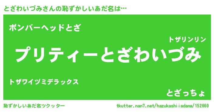 | ヒーロー風カッコイイあだ名 | 『スーパートザワイヅミ』『幻影騎士トザ』 |