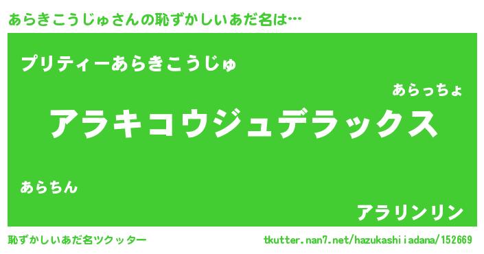 | 女子向けラノベタイトル風あだ名 | 『あらきこうじゅアンティーク』 |