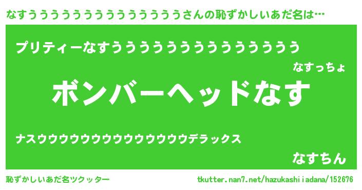 | 女子向けラノベタイトル風あだ名 | 『なすうううううううううううううう恋絵巻』 |