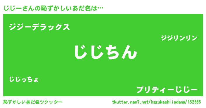 | 男性向けラノベタイトル風あだ名 | 『じじーという概念が存在しない退屈な世界 』 |