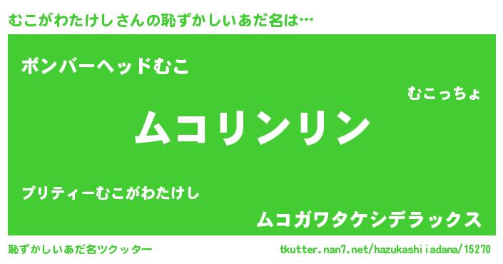 | 意味不明あだ名 | 『とにかく怪しいむこがわたけし』 |