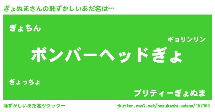 | ヘコむあだ名 | 『ぎょぬま(震え声)』『ぎょにゅー』 |