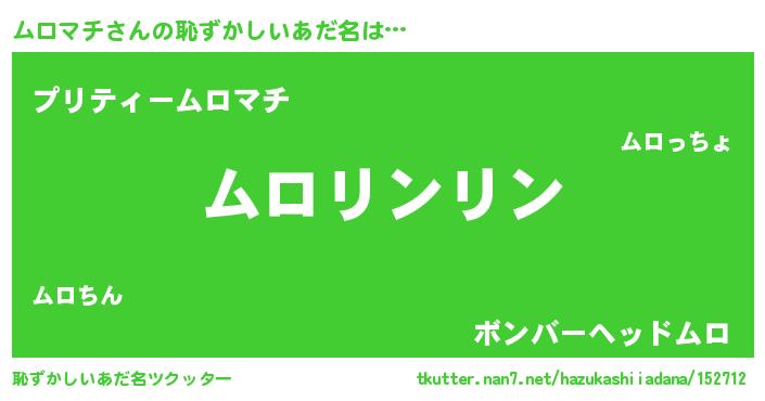 | 意味不明あだ名 | 『とにかく怪しいムロマチ』 |