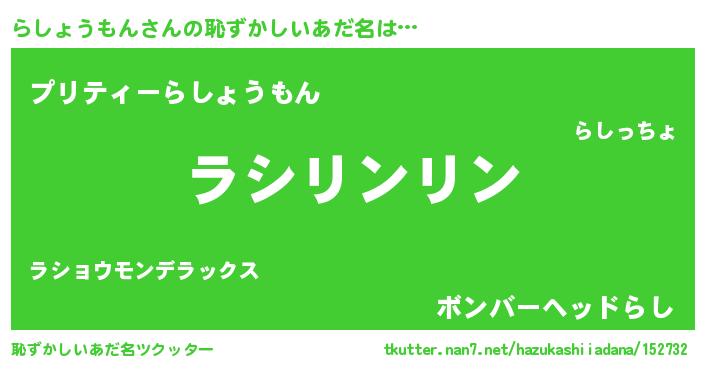 | 意味不明あだ名 | 『とにかく怪しいらしょうもん』 |