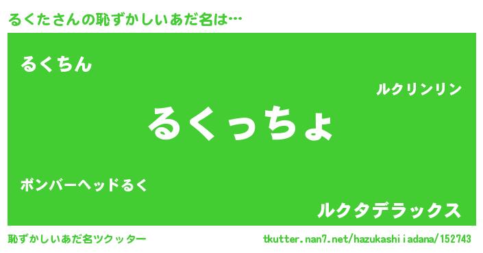 | 男性向けラノベタイトル風あだ名 | 『るくた~年齢イコール彼女いない歴の魔法使い~』 |