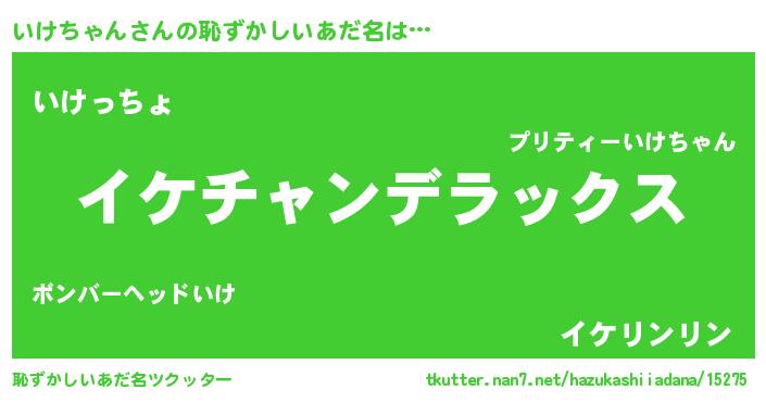| 意味不明あだ名 | 『自称いけちゃん』『ペロリンいけちゃん』 |