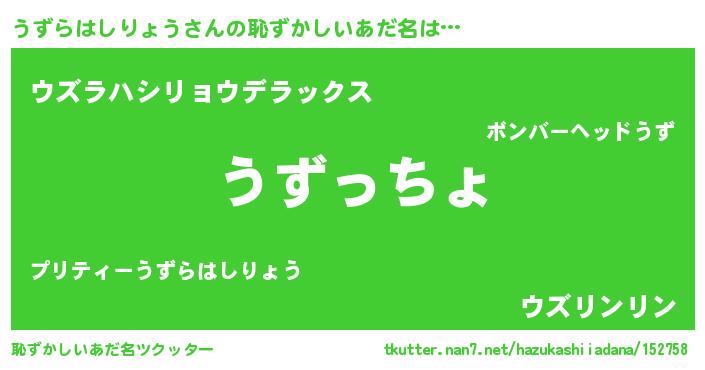 | 意味不明あだ名 | 『うずらはしりょうフォーエバー』 |