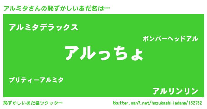 | 意味不明あだ名 | 『アルミタフォーエバー』『自称アルミタ』 |
