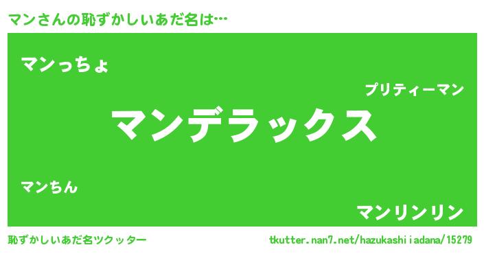 | 男性向けラノベタイトル風あだ名 | 『この素晴らしい世界にマンを!』 |