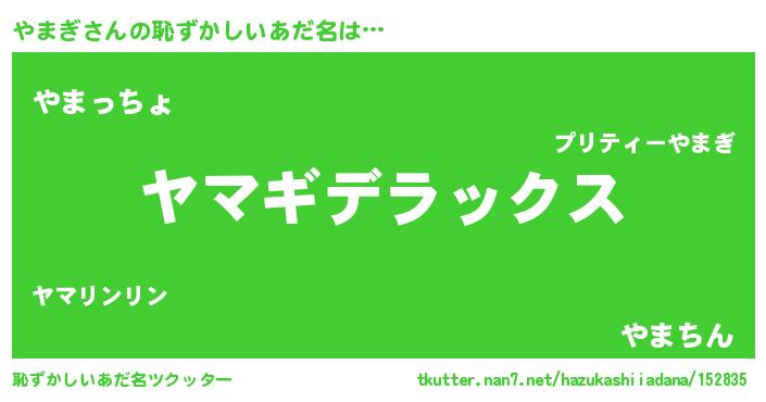 | 意味不明あだ名 | 『自称やまぎ』『やまぎフォーエバー』 |