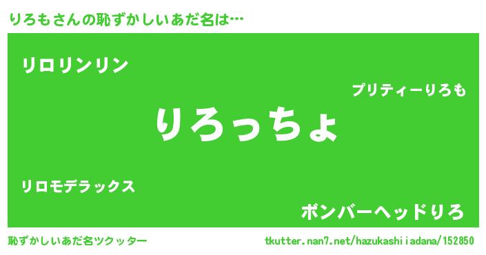 | 意味不明あだ名 | 『りろもフォーエバー』『ペロリンりろも』 |