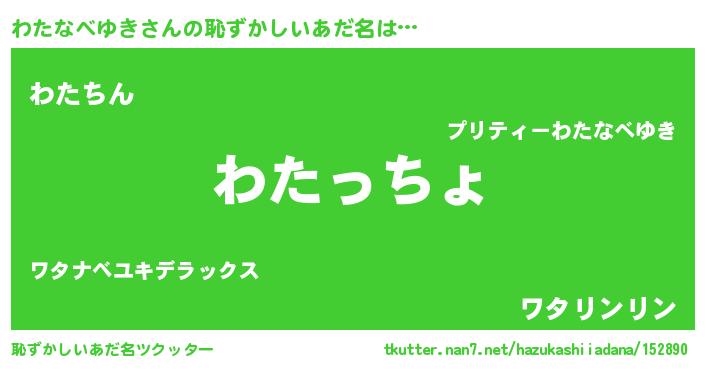 | ポケモン風あだ名 | 『ワタキング』『ワタナダネ』 |