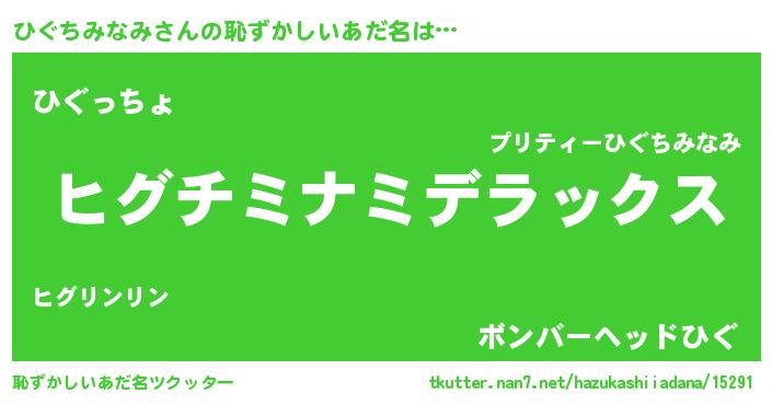 | ヒーロー風カッコイイあだ名 | 『仮面ヒグダー』『愛の使者ひぐちみなみ』 |
