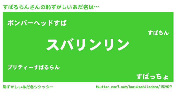 | 意味不明あだ名 | 『とにかく怪しいすばるらん』 |