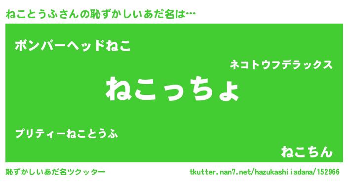 | 欧米人風あだ名 | 『トリンドルねことうふ』 |
